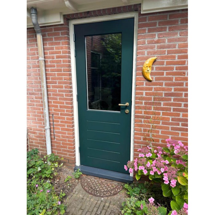 Deze buitendeur is voorzien van isolatieglas en het glas is reeds gemonteerd.