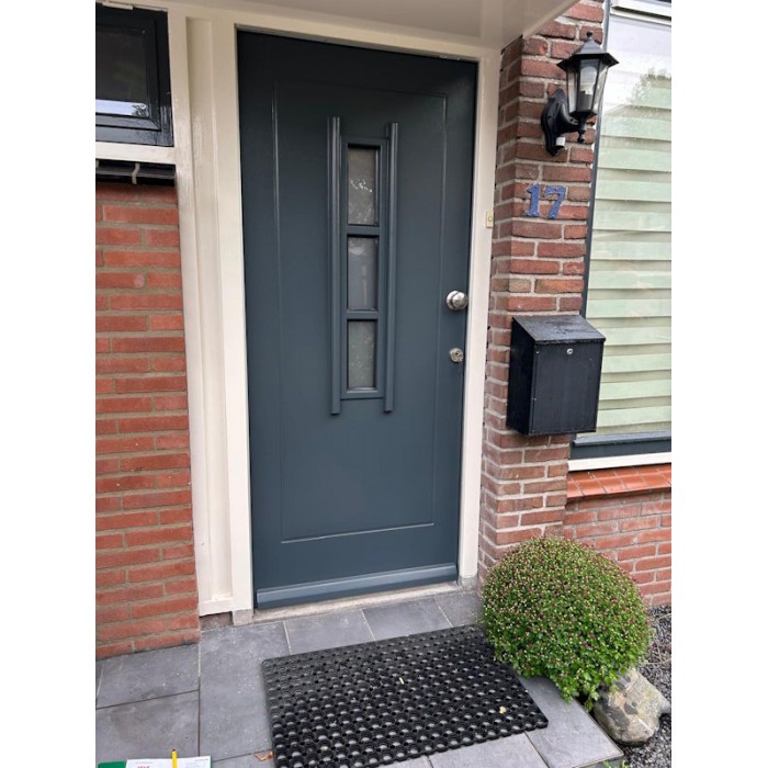 Deze voordeur is voorzien van isolatieglas en het glas is reeds gemonteerd.
