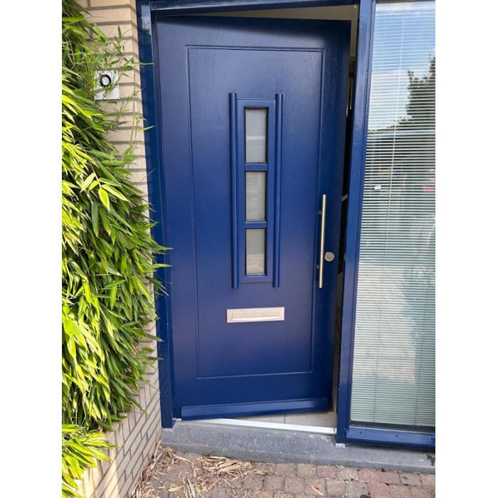 Deze voordeur is voorzien van isolatieglas en het glas is reeds gemonteerd.