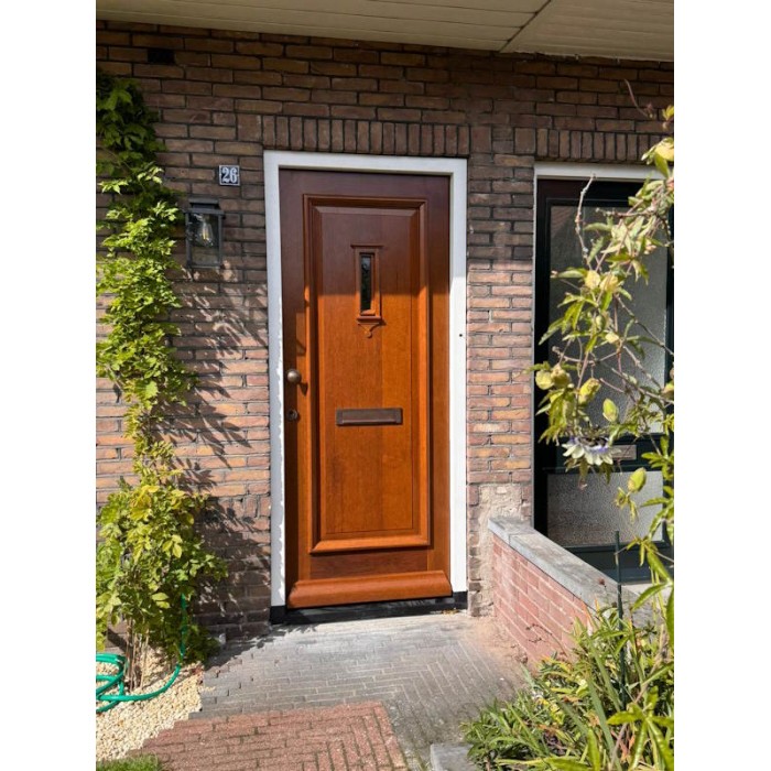 Tegen meerprijs ook leverbaar in 54mm dikte. Deze voordeur wordt inclusief een weldorpel geleverd.