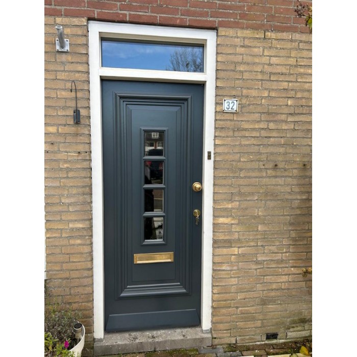 Ik heb gekozen om hem in te laten meten en plaatsen door Decodeur, hetgeen opgenomen werd door JDT Deuren. Duurde wel een paar weken voordat de afspraak met JDT rond was, hetgeen door ziekte en personeelstekort kwam. Na te zijn ingemeten is de bestelling geplaatst en duurde het dik 18 weken voordat de deur in Nederland was. (Geproduceerd door Javadeur in hun fabriek in Indonesië)