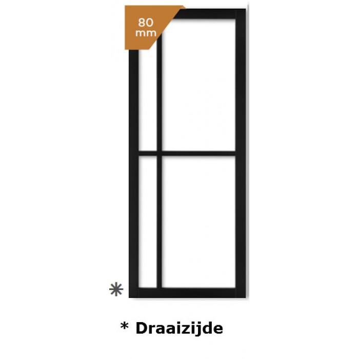 Industriële binnendeur met een strak, modern, stoer en tijdloos design. Kenmerkend voor deze deur is de verfijnde uitstraling en de slanke profilering. Passend in een modern en strak interieur. De deur zorgt voor en een ruimtelijk karakter. Ook toepasbaar als dubbele deuren of schuifdeur(en).