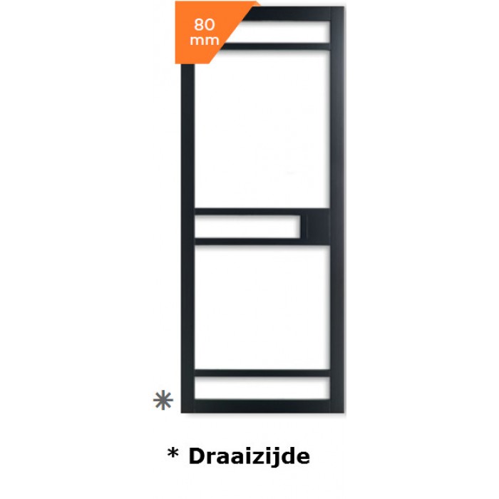 Industriële binnendeur met een strak, modern, stoer en tijdloos design. Kenmerkend voor deze deur is de verfijnde uitstraling en de slanke profilering. Passend in een modern en strak interieur. De deur zorgt voor en een ruimtelijk karakter. Ook toepasbaar als dubbele deuren of schuifdeur(en).