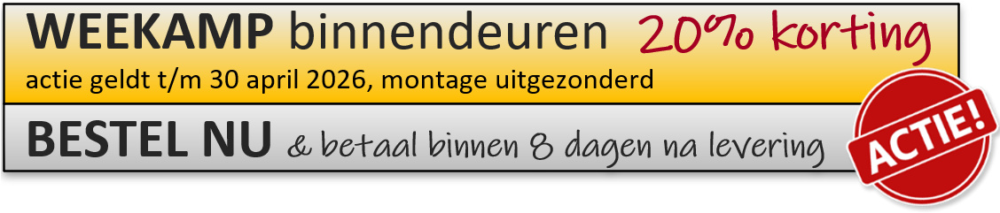 Deze Weekamp binnendeur van Weekamp is leverbaar tot een maximale maat van 1200mm breed en 2400mm hoog. Levertijd bedraagt circa vijf weken.